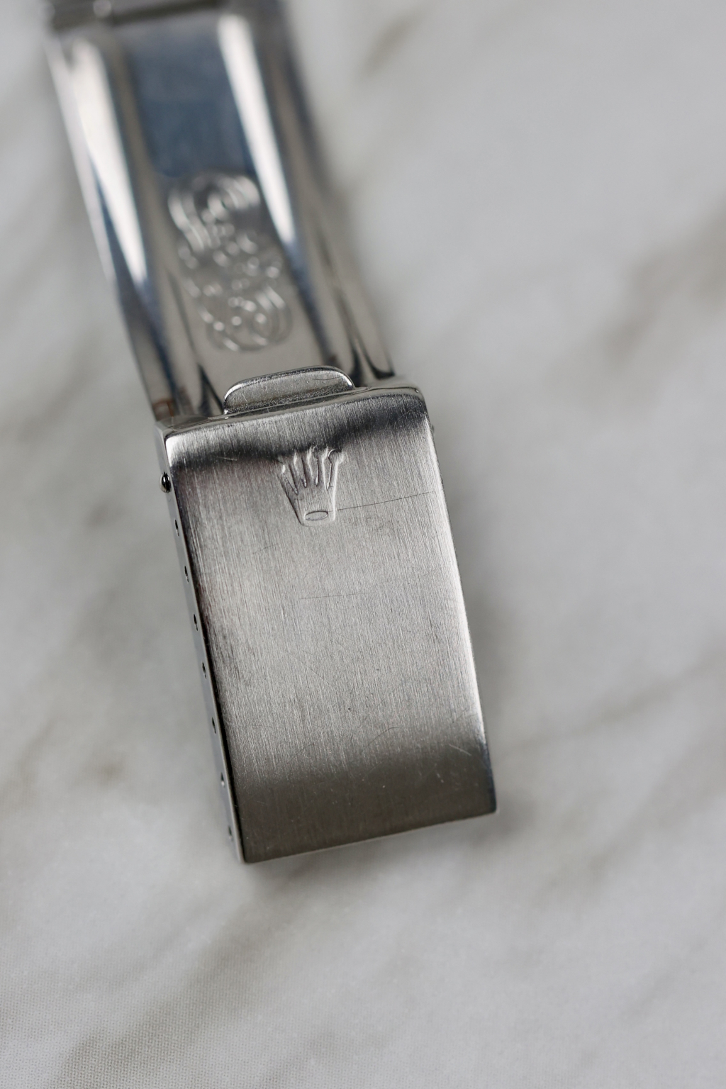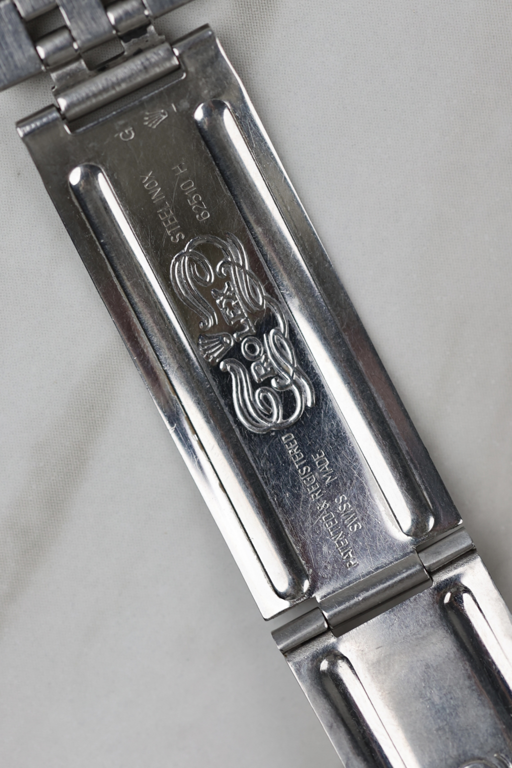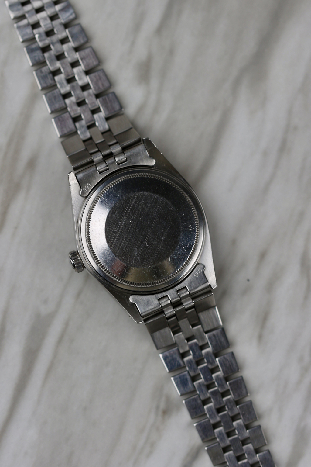 This striking Rolex Datejust Ref. 16030 stands out with its uncommon black metallic dial. A rare and captivating variation that plays beautifully with the light. Produced in the early 1980s, it features all the hallmarks of the classic 16030: a 36 mm stainless steel Oyster case, engine-turned bezel, quickset date, and the robust automatic movement 3035. The lume plots have aged perfectly, showing a warm, even patina that matches the tone of the original hands. Fitted with a 62510H Jubilee bracelet and a “G”-stamped clasp (1982), this configuration is period-correct for a Datejust produced around 1984, when Rolex commonly used pre-produced bracelet parts in later assemblies.