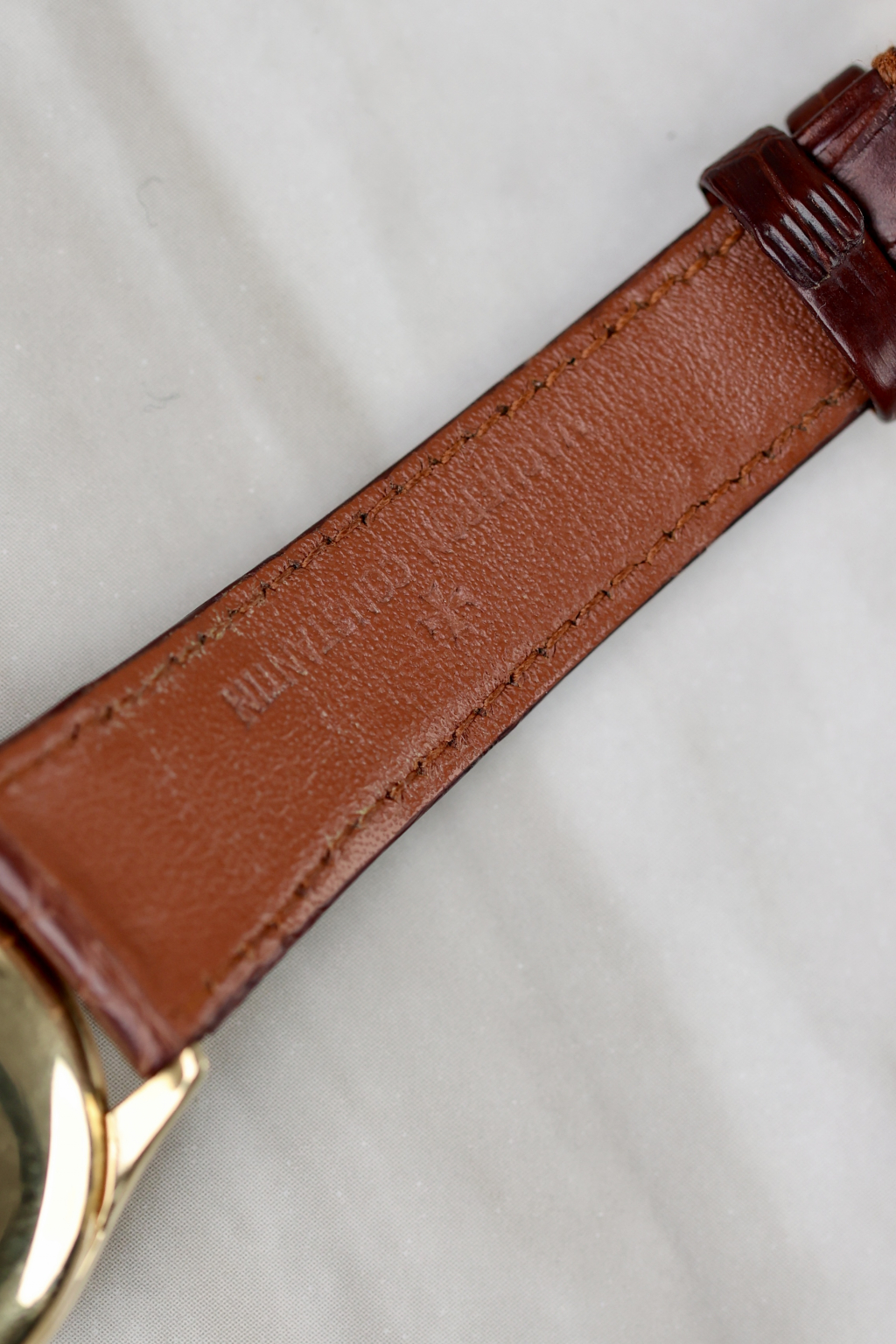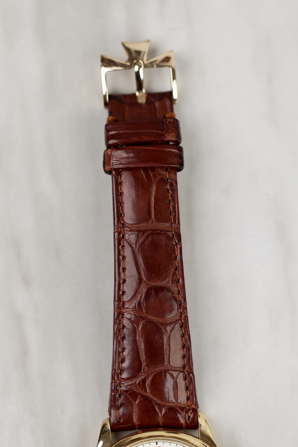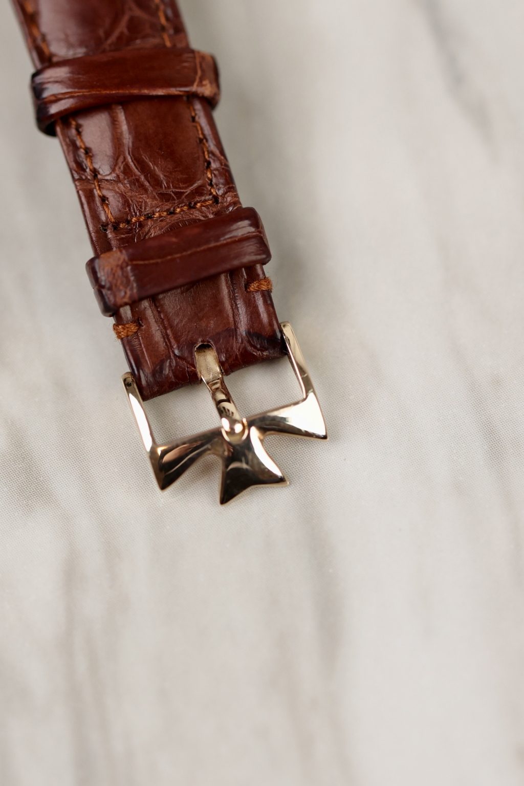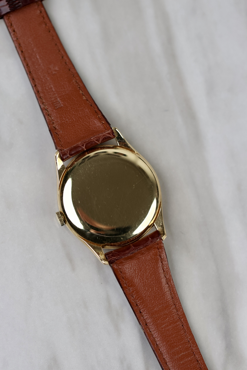 This example features an 18 K yellow‑gold case of roughly mid‑century proportions, a manually wound movement, and a timeless look that feels at home with both vintage leather and modern minimalism. The estimated period production for Ref. 4073 watches spans from the 1940s into the 1950s.