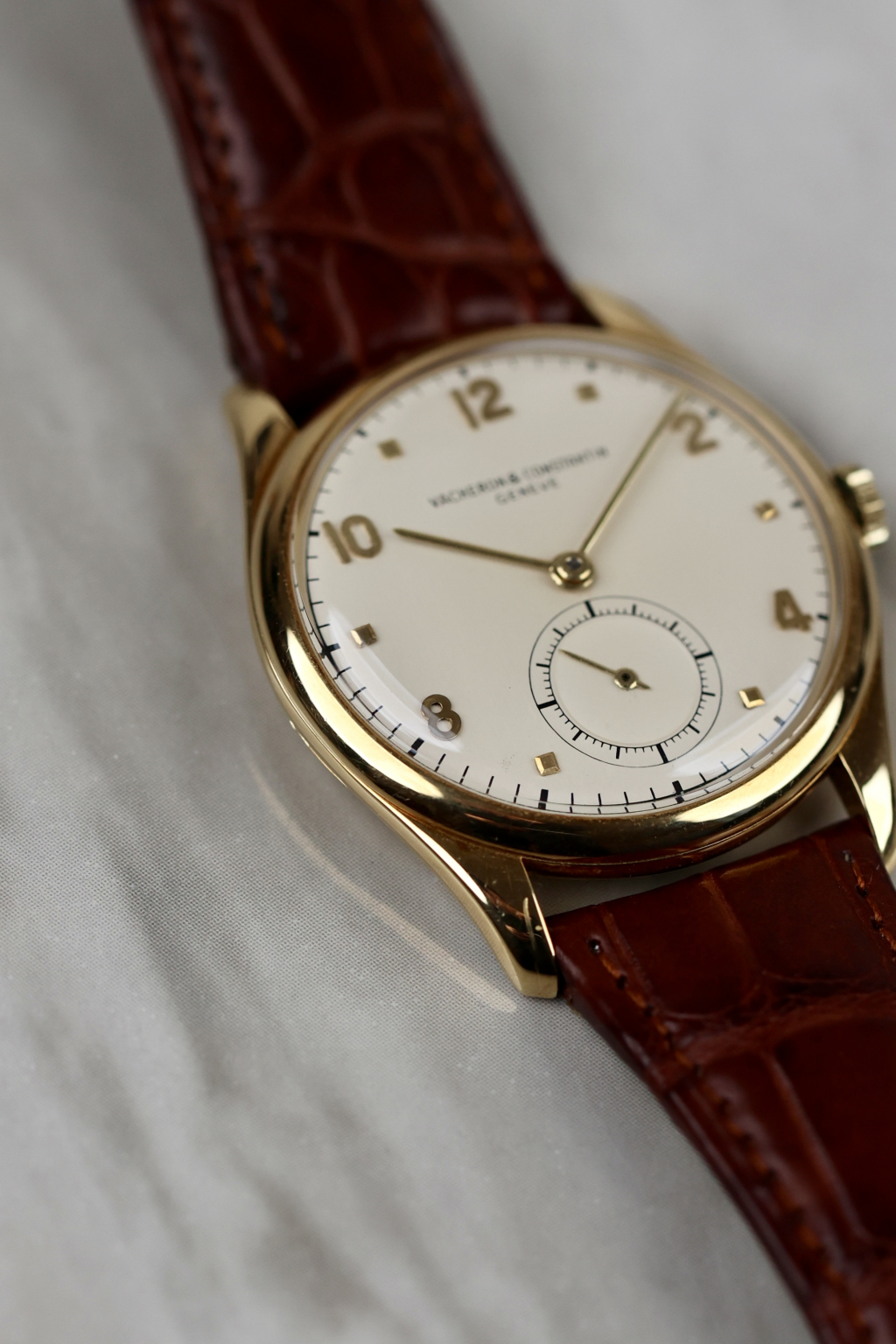 A quietly confident classic from one of Switzerland’s oldest watchmakers, this vintage Vacheron Constantin shows the elegant simplicity of the 1950s dress watches. Back then, Vacheron was making refined, time‑only pieces in the same elegant style that collectors now lovingly compare to the era’s Patek Philippe Calatrava. Slim profiles, neat sub‑seconds dials, and cases that wear like they’re meant to be cherished.
