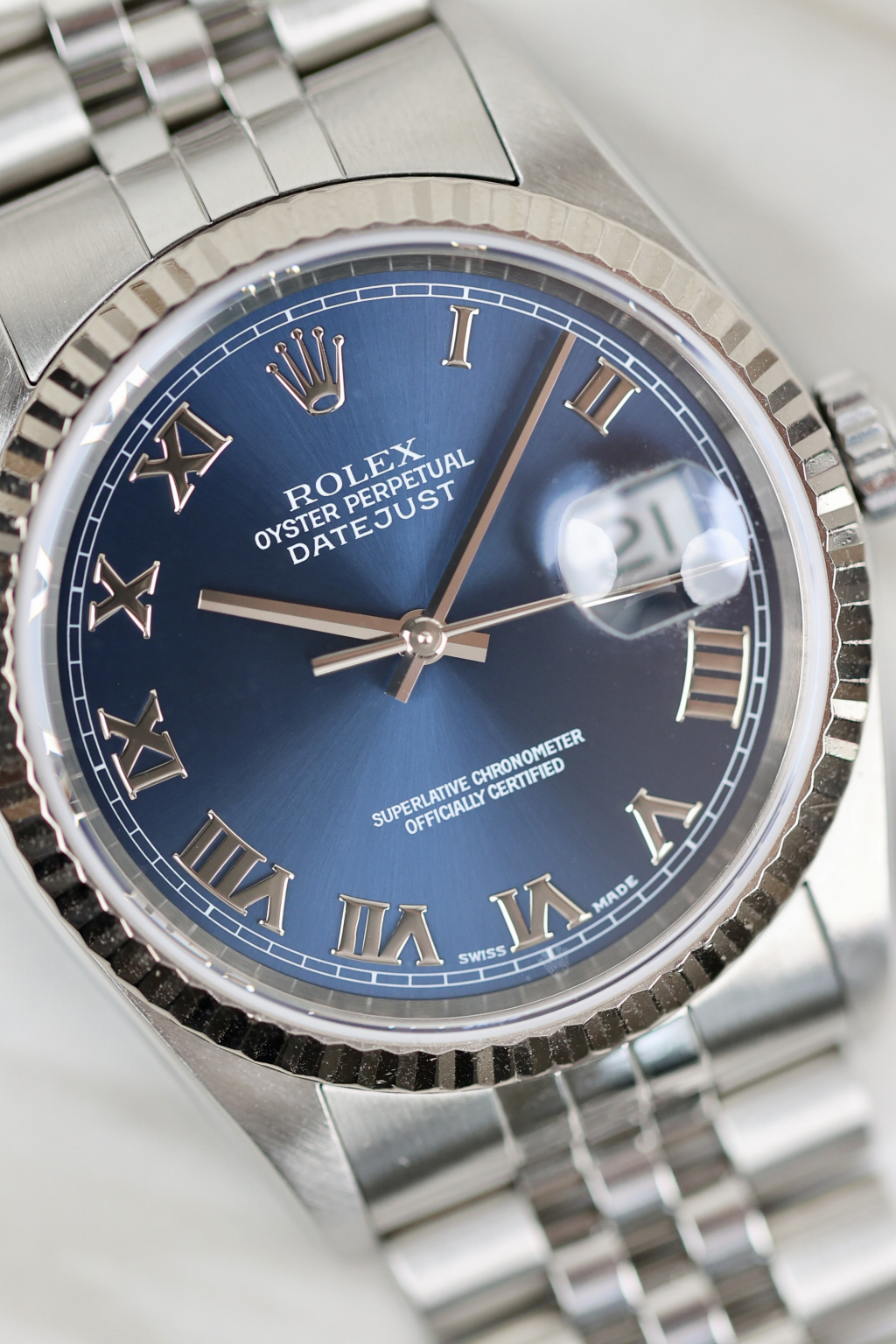 The Datejust 16234 is one of the most versatile and well-balanced references in the Datejust family. It features the 36mm case, a white gold fluted bezel, and the reliable automatic calibre 3135, complete with quickset date function for added convenience.