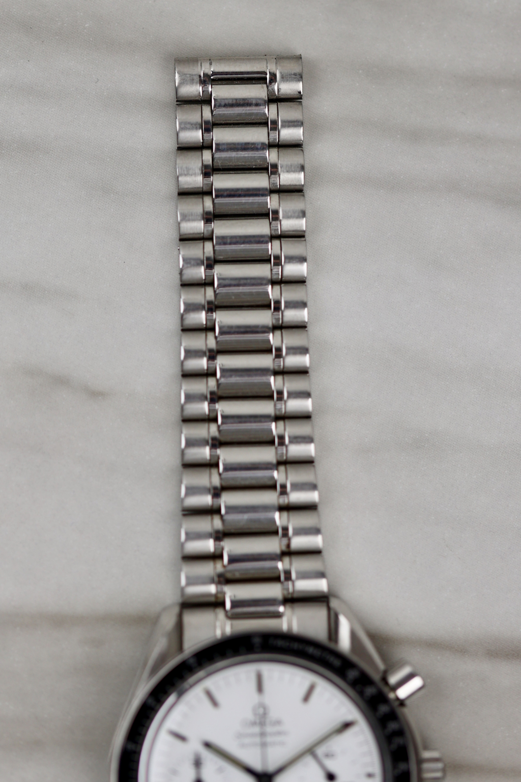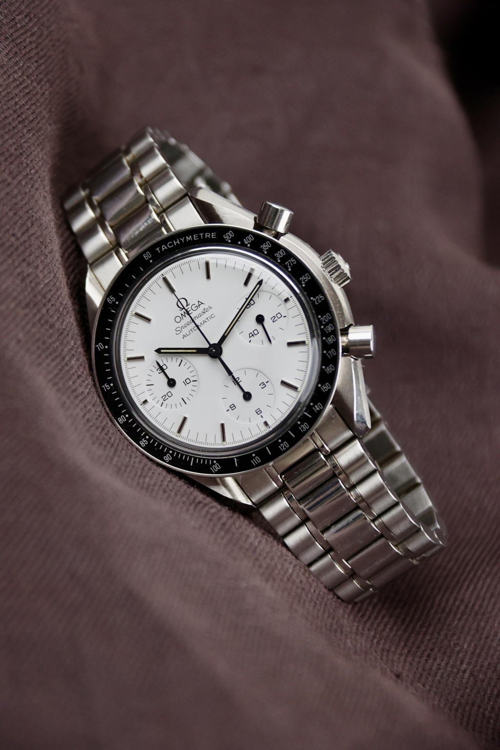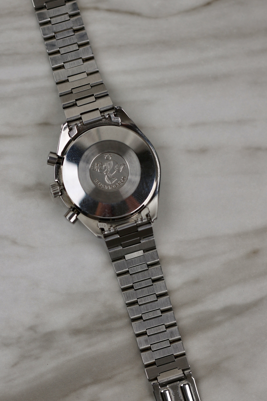 Housed in a 38.5 mm stainless steel case, the watch delivers the iconic Speedmaster design in a more compact format. It is powered by the Caliber 3220, based on the ETA 2890-A2 with a Dubois-Dépraz chronograph module, ensuring reliability and everyday usability.
