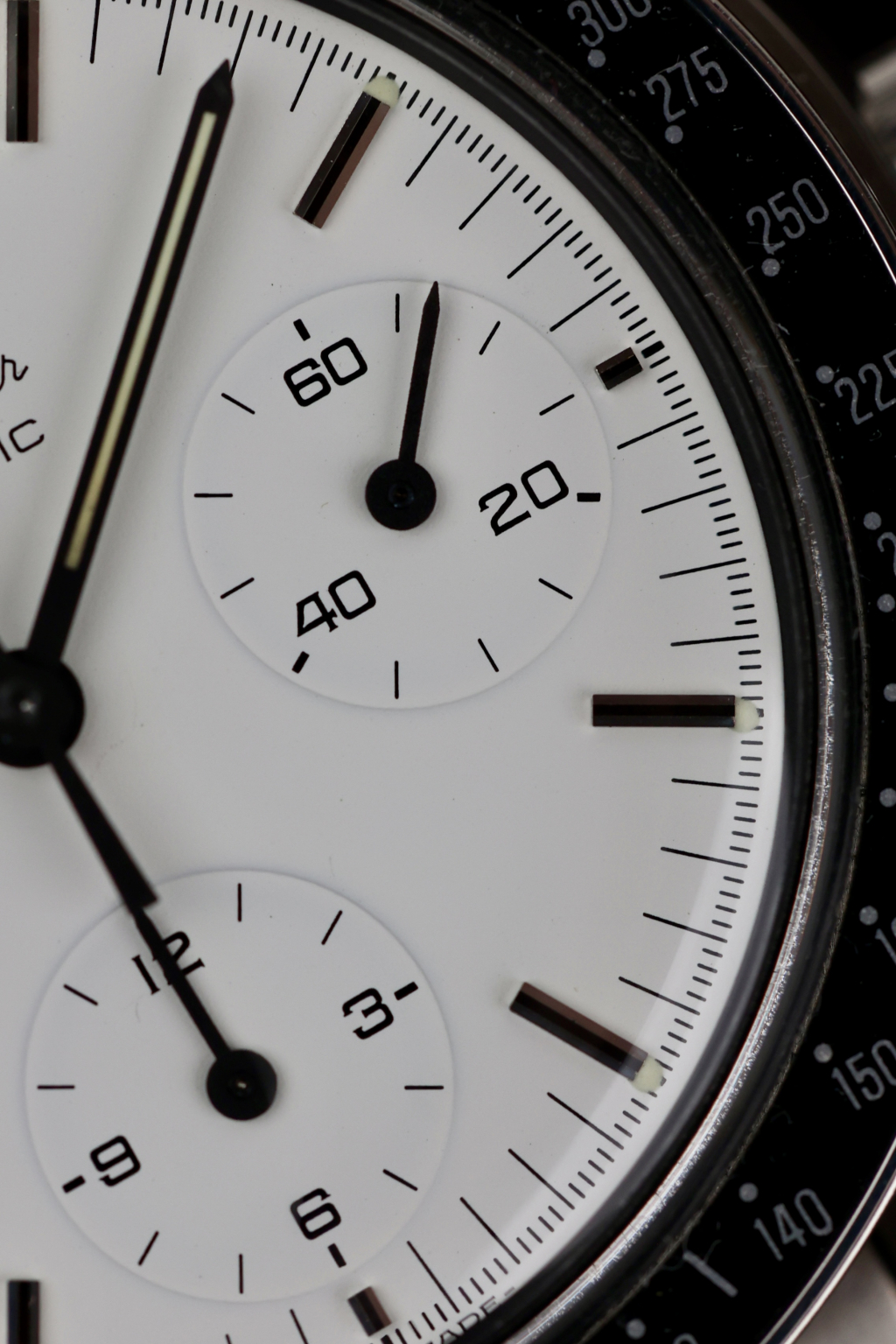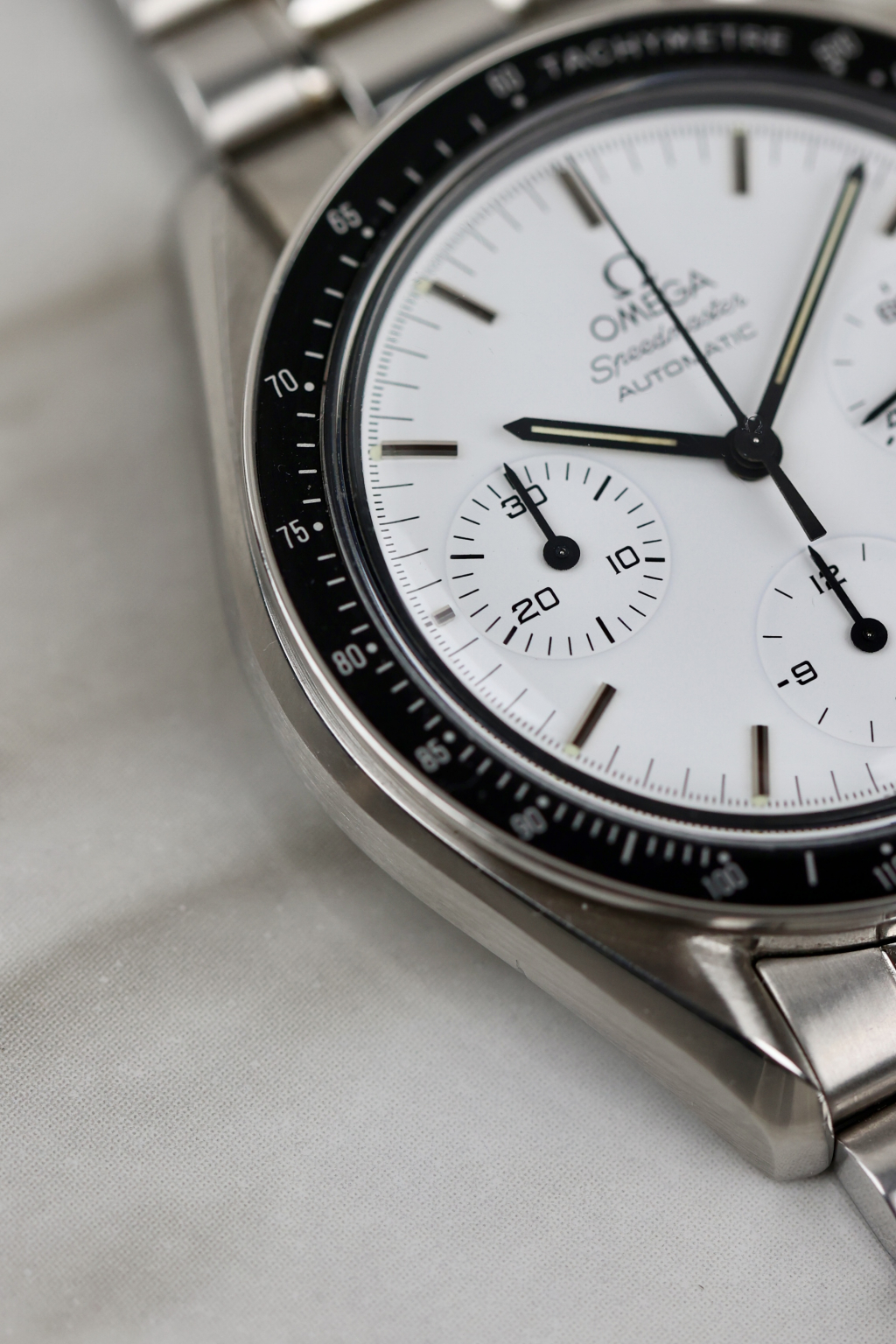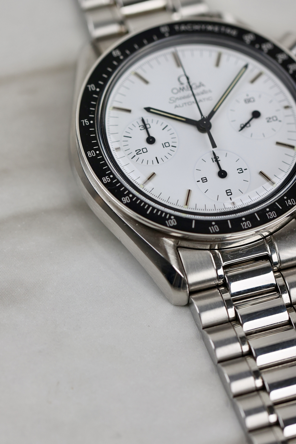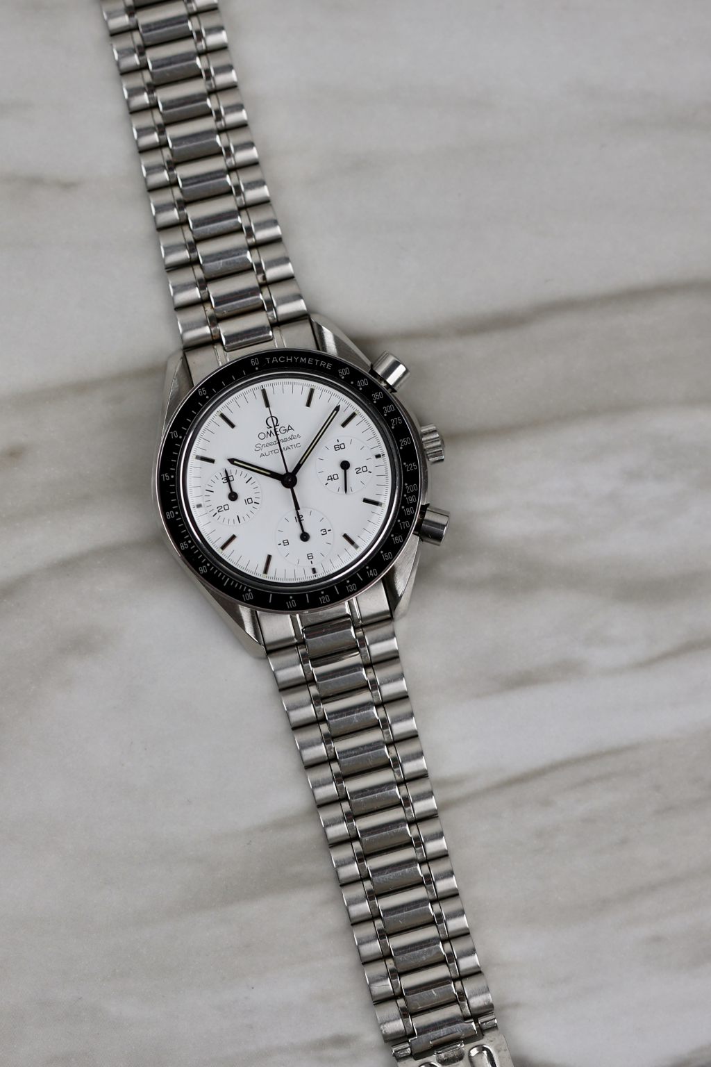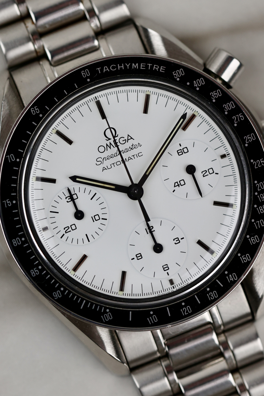 The Omega Speedmaster Automatic Ref. 3510.20, widely known as the “Marui Edition,” is among the rarest and most desirable versions of the Speedmaster Reduced line. It features a striking white “Albino” dial, offered exclusively through the Japanese department store Marui in the late 1990s.