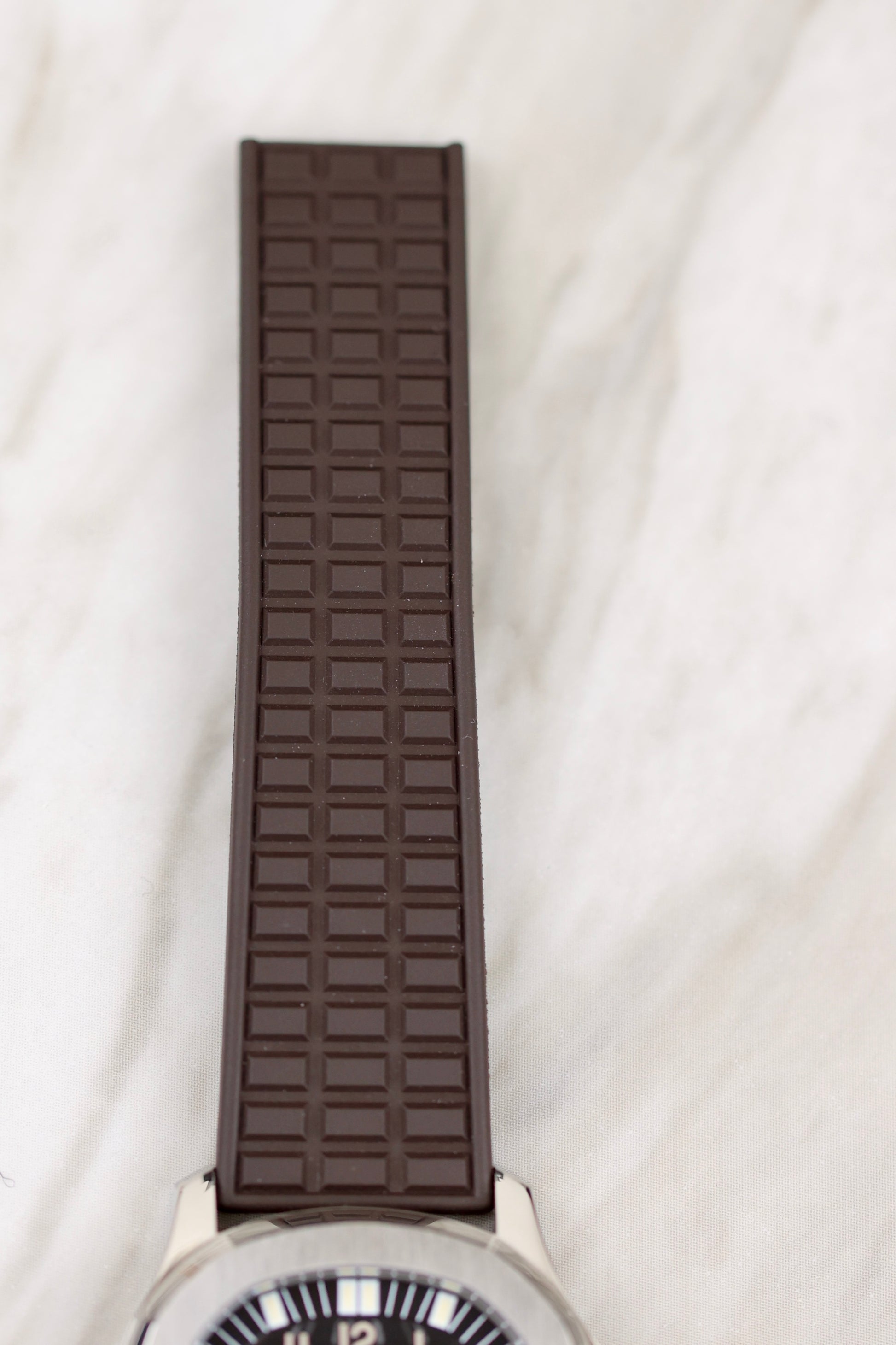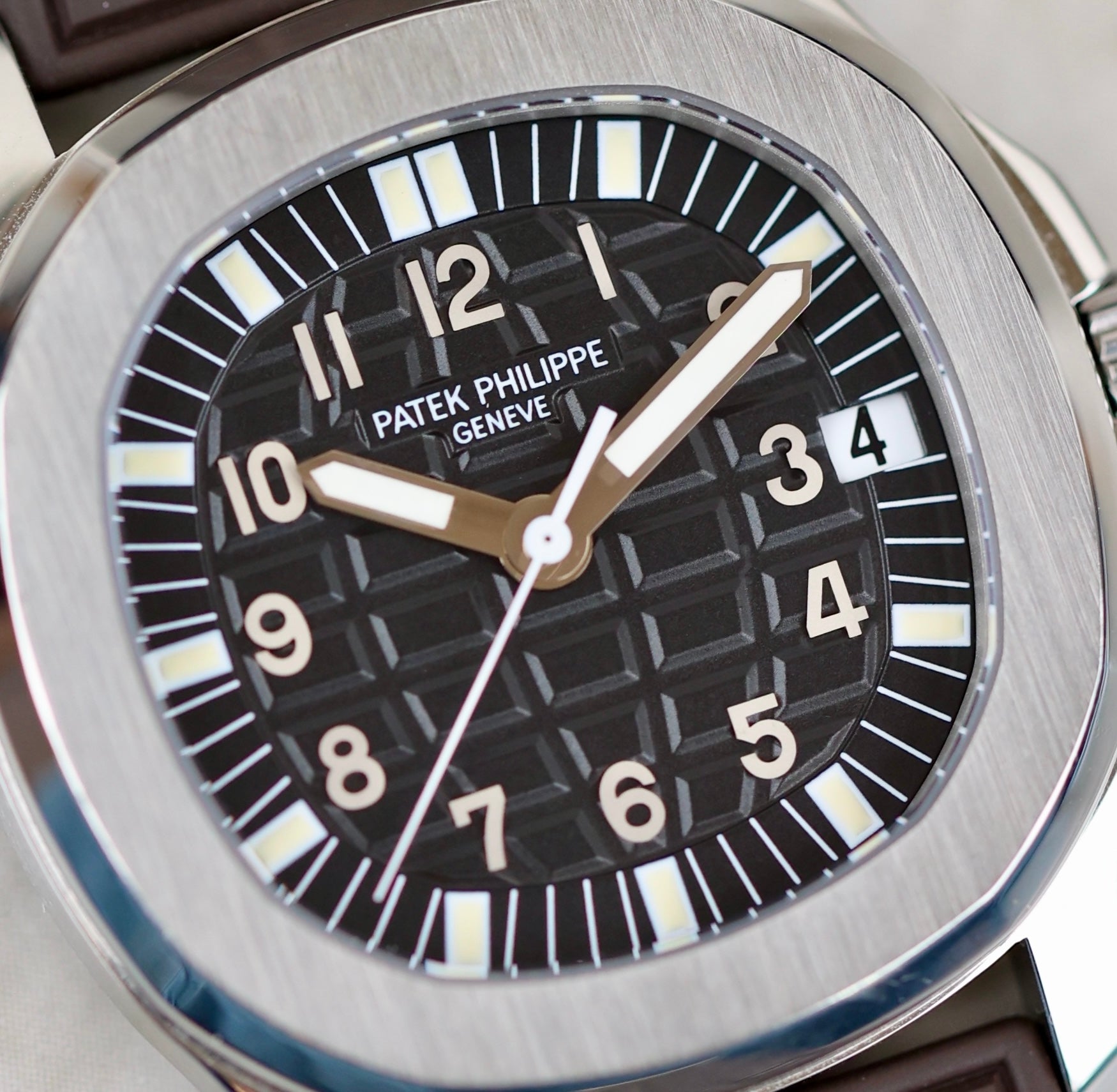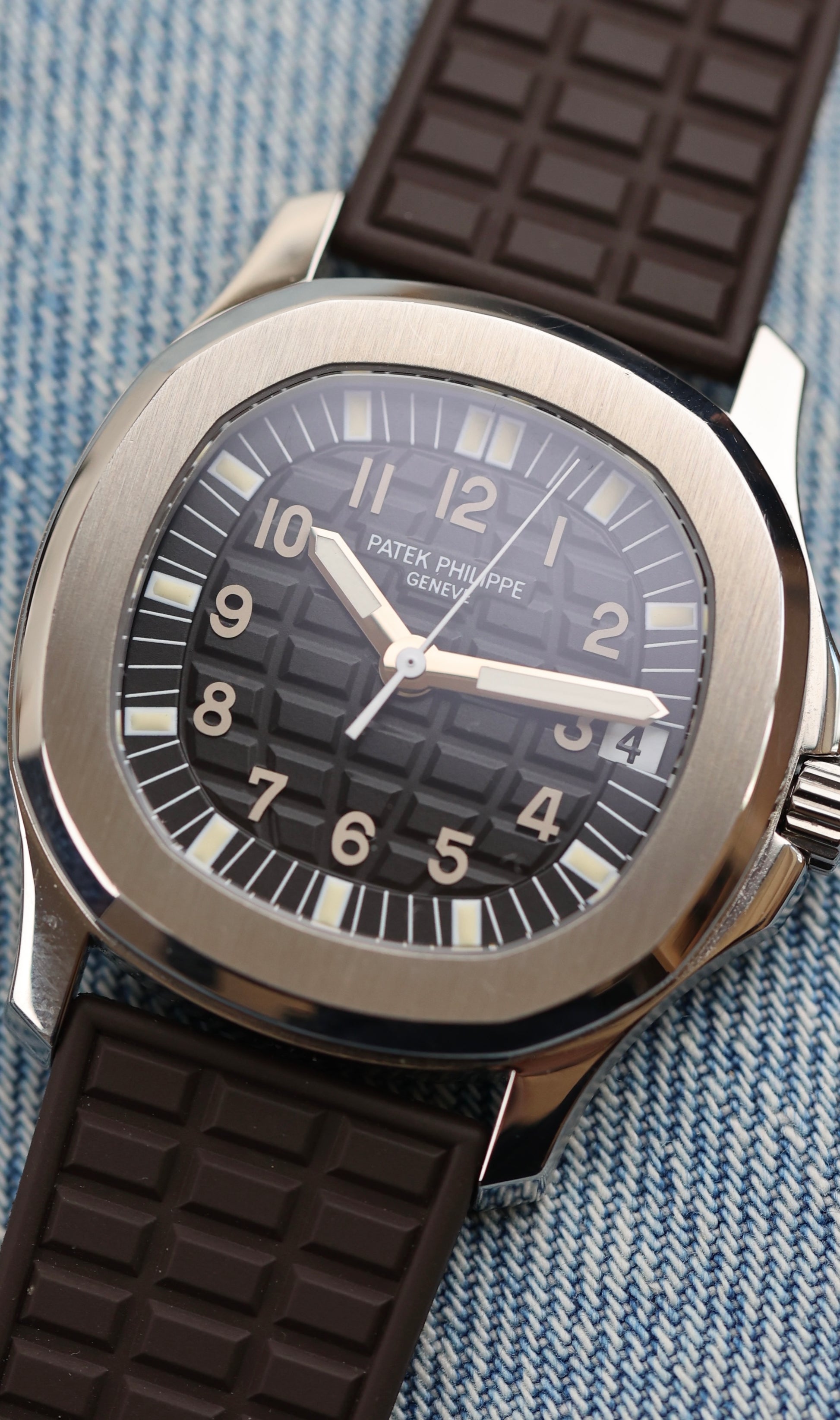 The Patek Philippe Aquanaut Ref. 5066, introduced in 1998, features a 36mm stainless steel case with a black embossed dial. This model is known for its distinct 18k white gold Arabic numerals and painted hour markers, which give the dial a sleek, elegant appearance. The date window is placed at the edge of the dial at 3 o'clock, a unique design choice for the Aquanaut series. Paired with a straight-end rubber strap, this timepiece combines luxury with a sporty edge, offering versatility for both casual and formal occasions. This reference helped define the evolution of the Aquanaut collection, blending high-end craftsmanship with an active lifestyle. The watch comes with an extract of archives from 2024,has two Patek rubber straps, brown and black. In addition to that, the watch comes also with the original steel bracelet, which is still unworn.