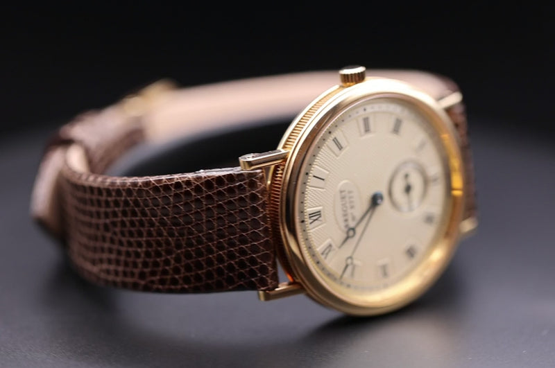 A slice of Breguet’s purest elegance packed into 34 mm of 18K gold. This is the quiet classic, a hand‑wound, small‑seconds dress watch from the house that practically invented haute horlogerie. With a svelte case, timeless Roman‑style or clean dial, and that signature coin‑edge bezel, it’s just an amazing classy companion. It definitely reminds you why Breguet’s been a heavyweight since 1775, think heritage, craftsmanship, and that subtle old‑world charm only a manual movement can give. Perfect if you want a dress watch that feels like a secret handshake among collectors.