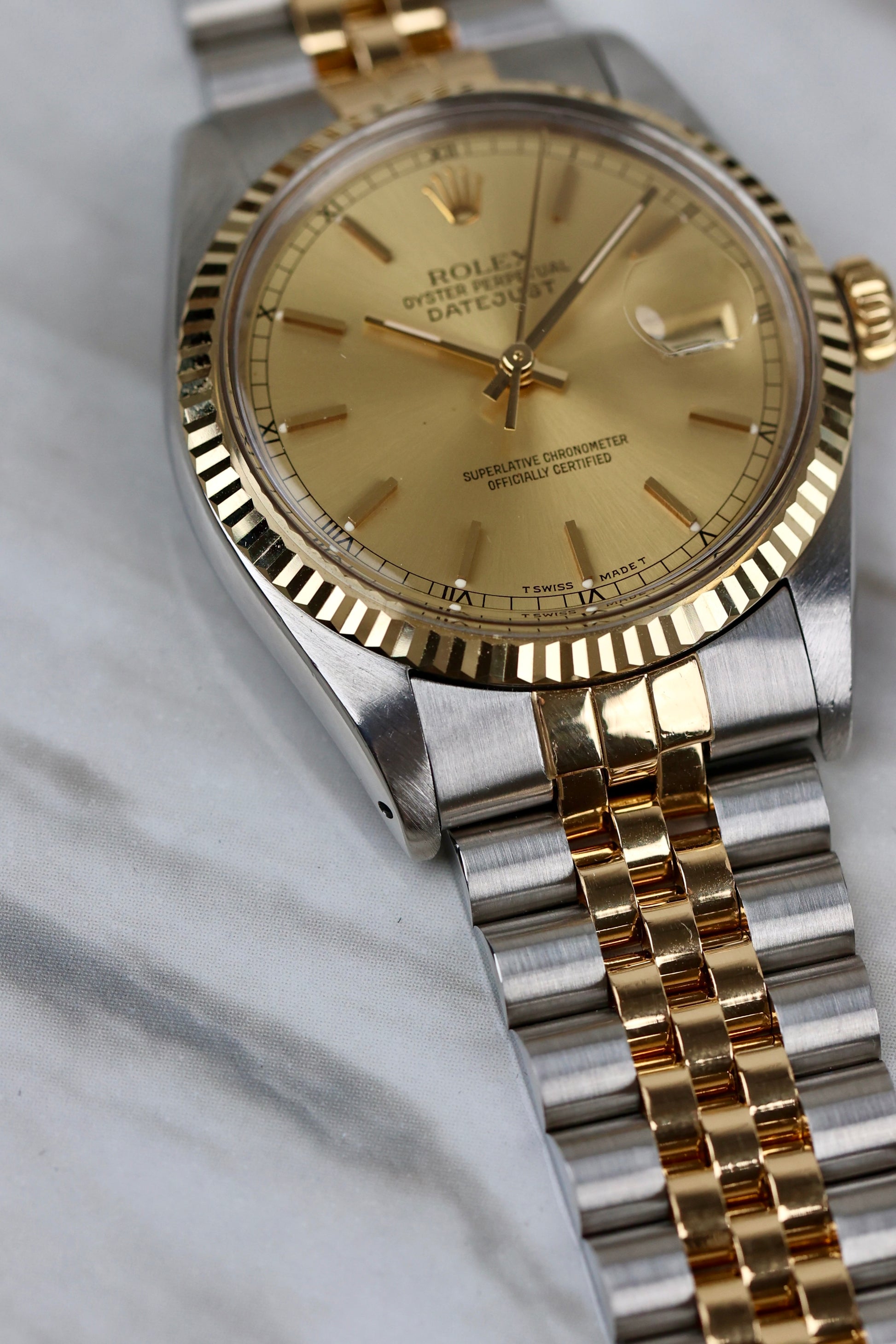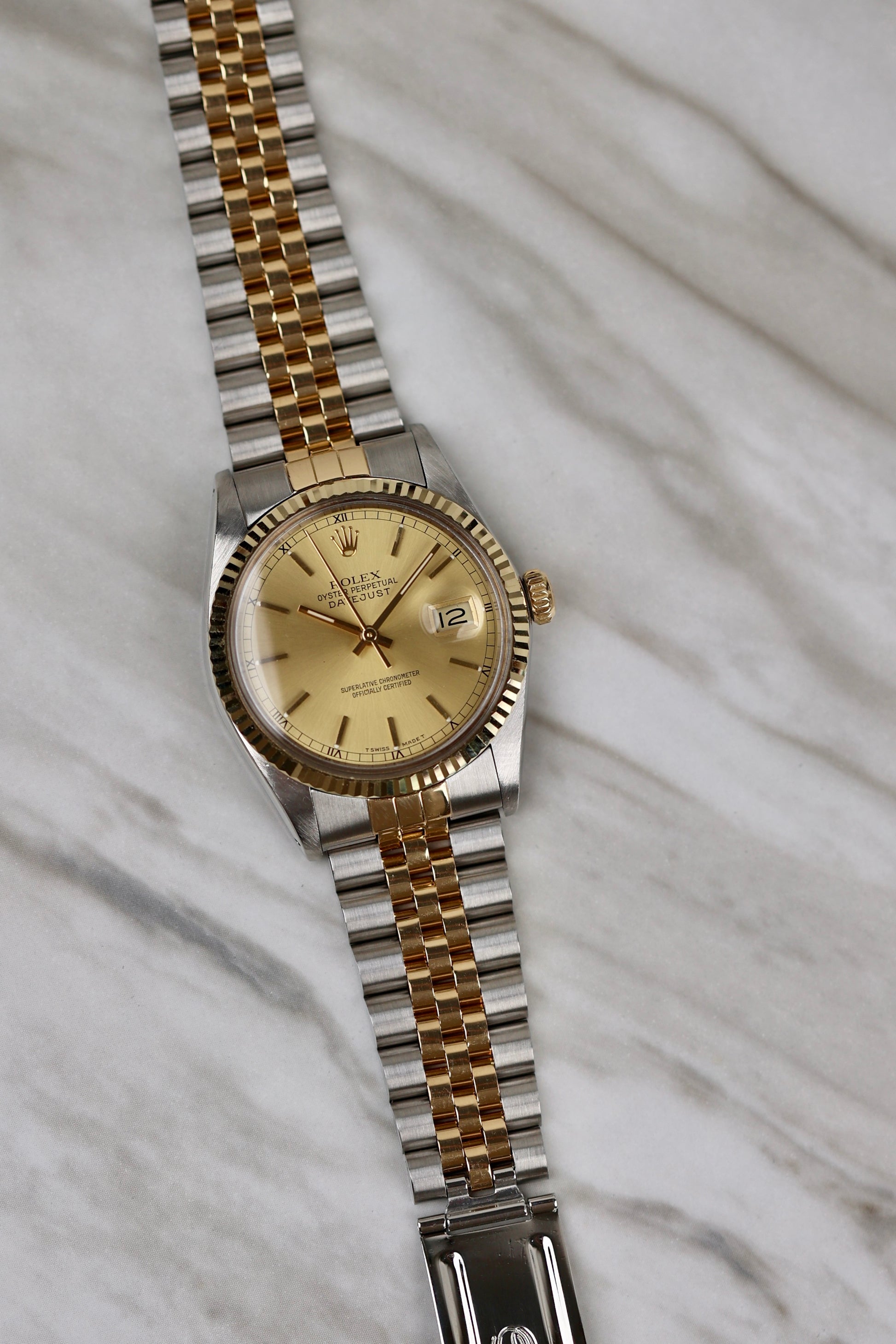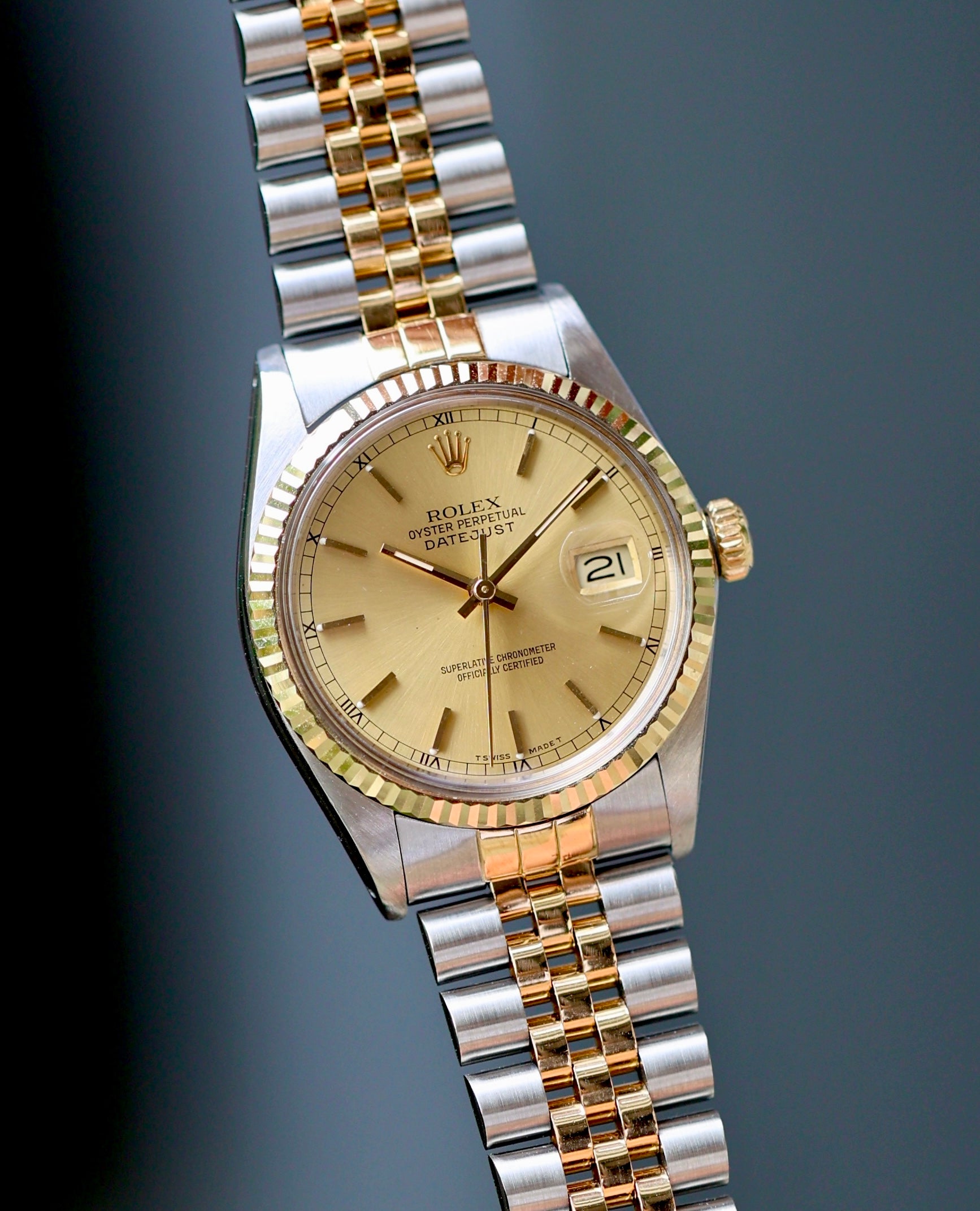 Debuting in 1977, the ref. 16013 heralded a new era for two-tone Datejusts, departing from its predecessor, the ref. 1601, which housed both mono and two-tone variations. The ref. 16013 proudly presented a dedicated two-tone reference number and introduced a contemporary flat dial, as well as a diverse array of innovative dial styles, like the rare one with the roman numeral outer track. These enhancements, paired with an upgraded mechanical movement, solidified the watch's position in Rolex's collection until the late 1980s. A noteworthy feature of the 16013 is its integration of the Rolex Caliber 3035, an improvement over the Calibers 1565 and 1575 utilized in earlier 160X reference series models. The implementation of the Caliber 3035 elevates the watch's precision and performance.