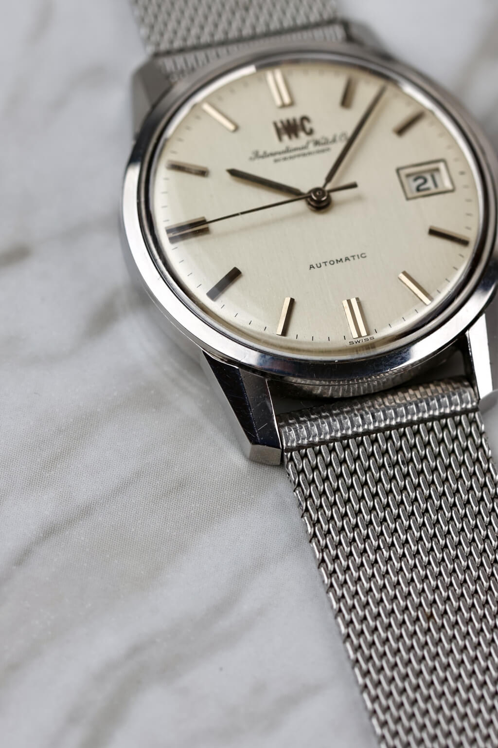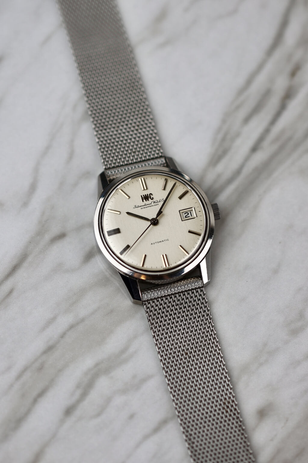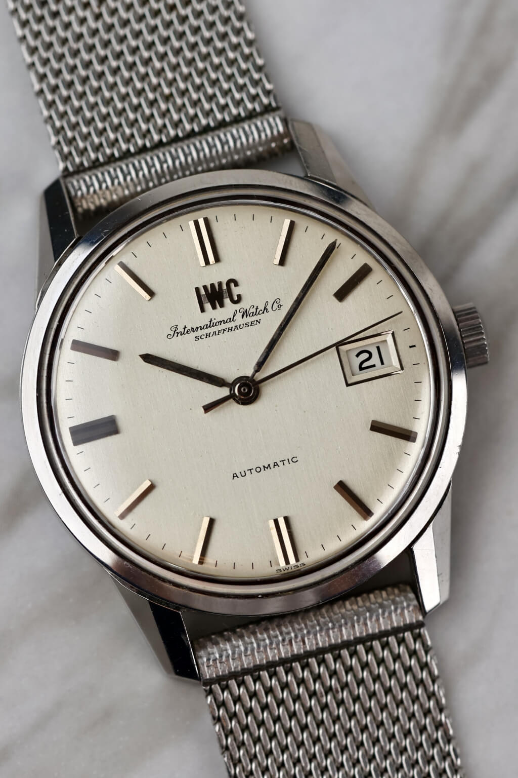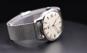 Die IWC R810AD aus den 60er Jahren ist eine atemberaubende Uhr in ausgezeichnetem Zustand. Sie läuft dank ihres zuverlässigen Automatikwerks perfekt und hält die Zeit präzise. Das Armband, das nicht original von IWC ist, befindet sich in hervorragendem Zustand und ergänzt das klassische, zeitlose Design der Uhr. Dieses Stück hat einen sehr schönen Vintage-Charme und ist eine tolle Ergänzung für jede Sammlung.