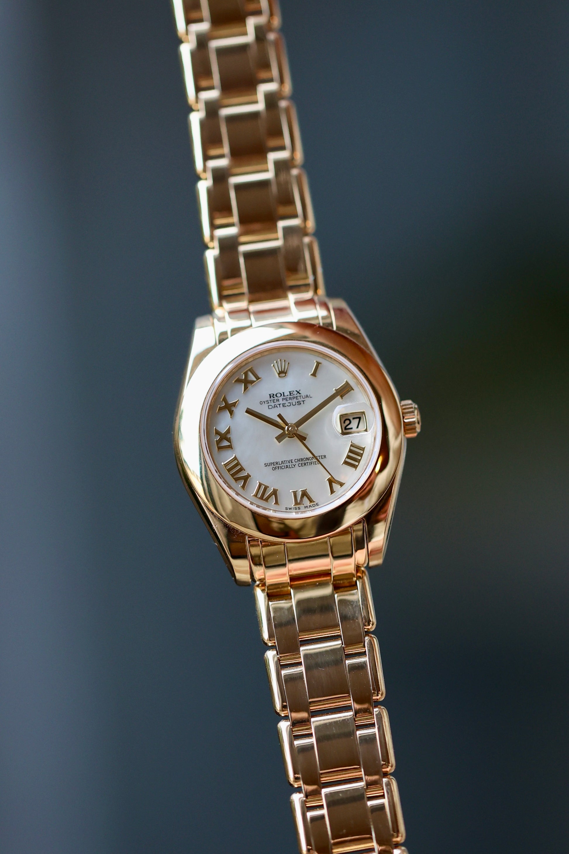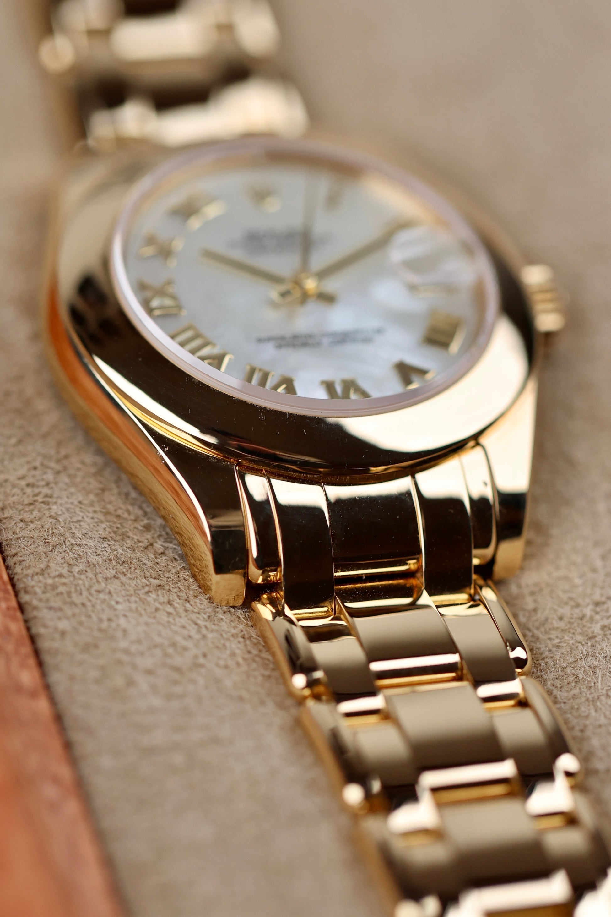 And then there’s the bracelet, the real scene-stealer. The Pearlmaster bracelet was designed specifically for this line: rounded five-piece links, made only in precious metals, finished to a near-liquid shine. It’s incredibly comfortable and ends with Rolex’s hidden Crownclasp, so the whole bracelet looks like one continuous ribbon of gold. This isn’t your everyday Rolex. It’s softer, rarer, and just a little bit spoiled, in the best possible way.