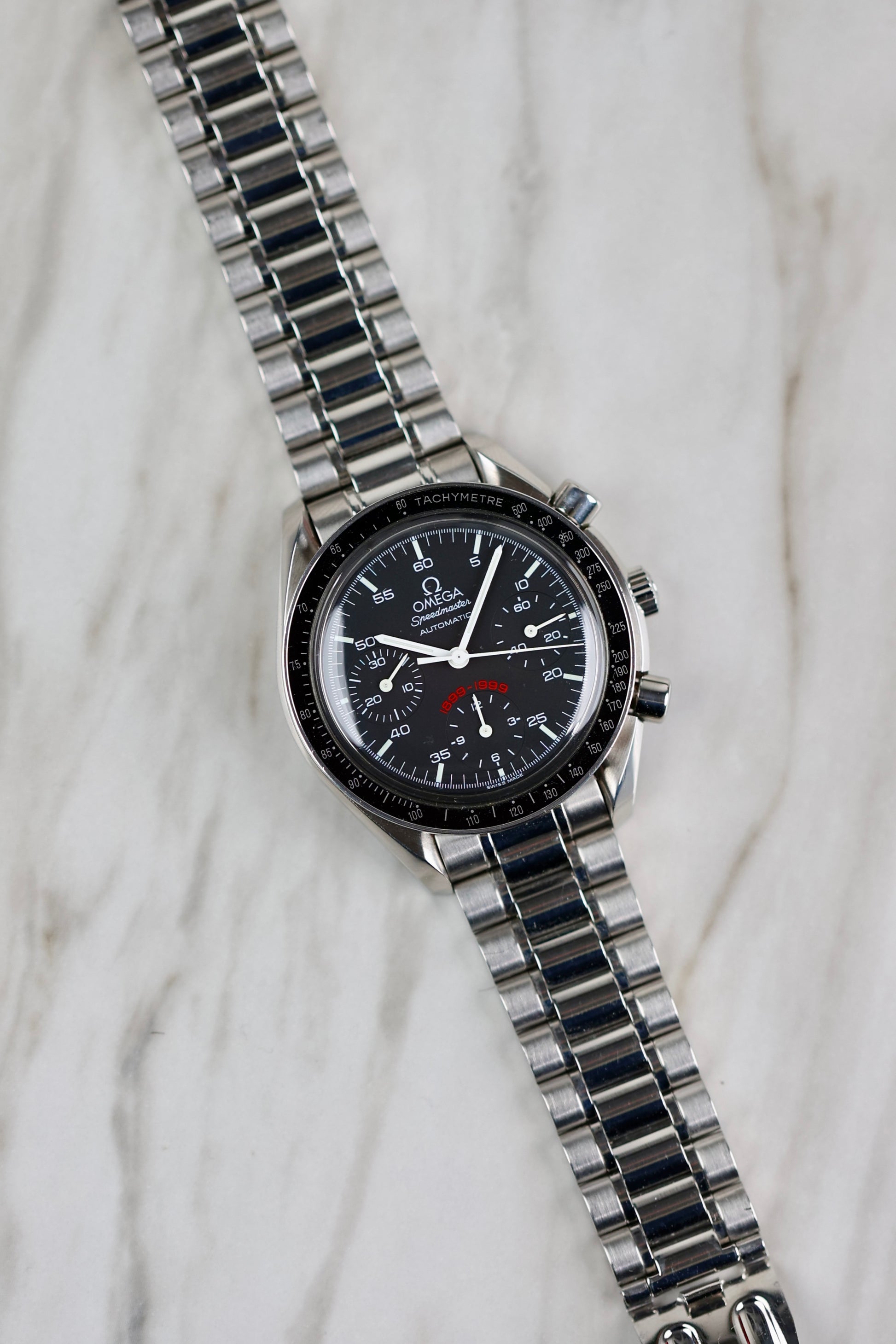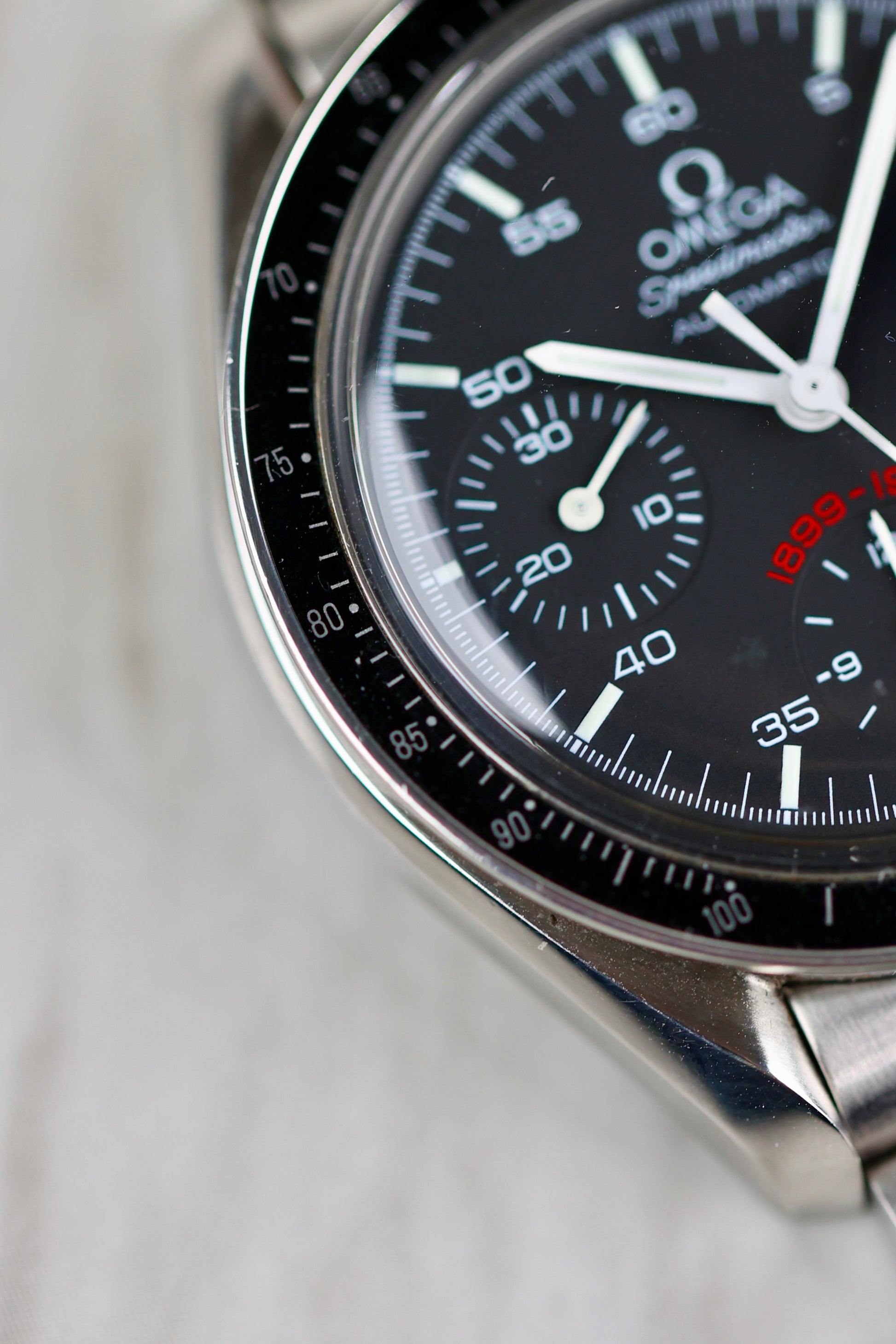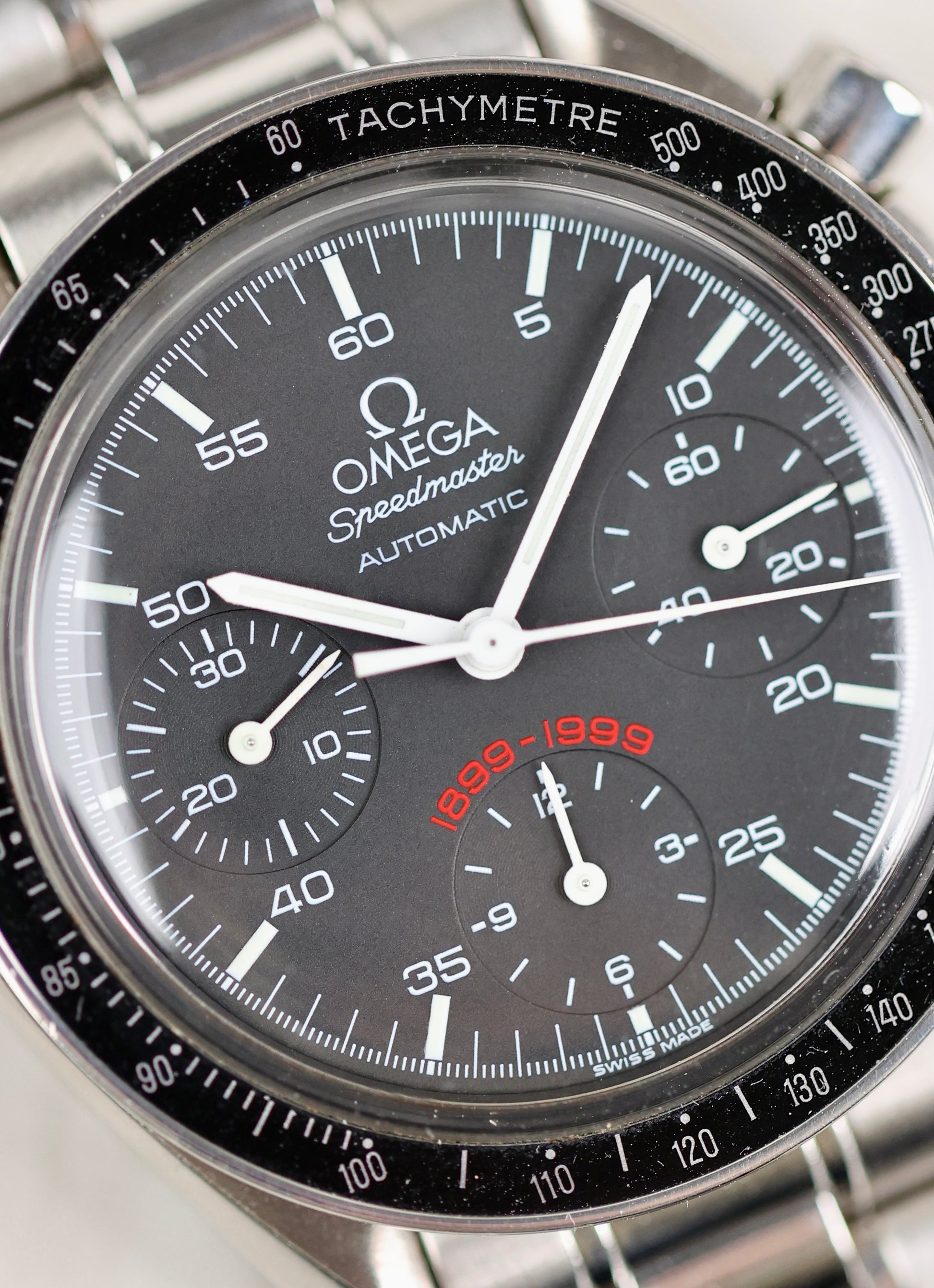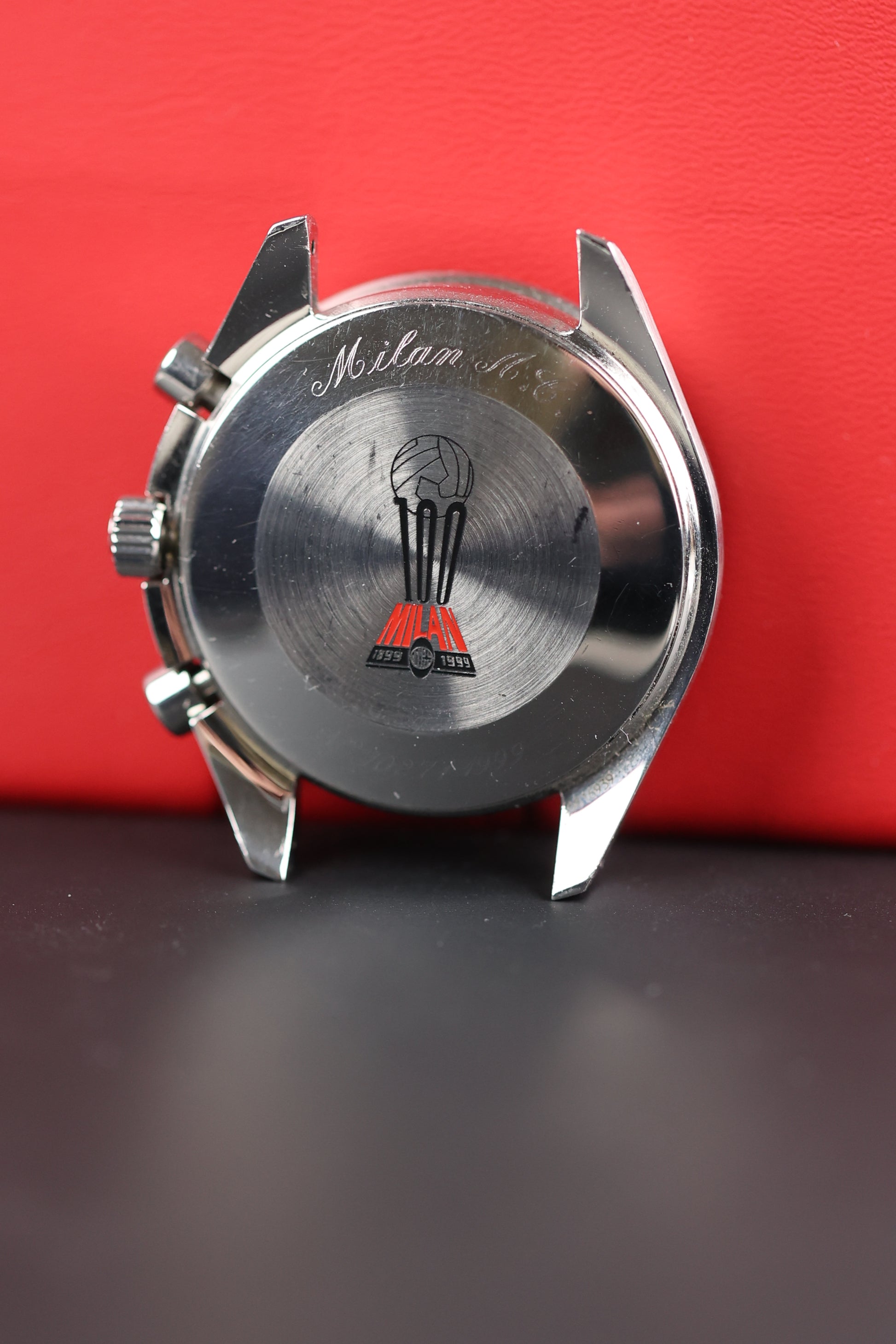 This isn’t just a Speedmaster, it’s a tribute to A.C. Milan’s century of football history. Made for the club’s 100th anniversary from 1899 to 1999, the reference 3510.51 brings the spirit of San Siro right to the wrist. The black dial is dressed with bold red accents, Milan’s iconic colors, with a subtle anniversary stamp just above six o’clock.